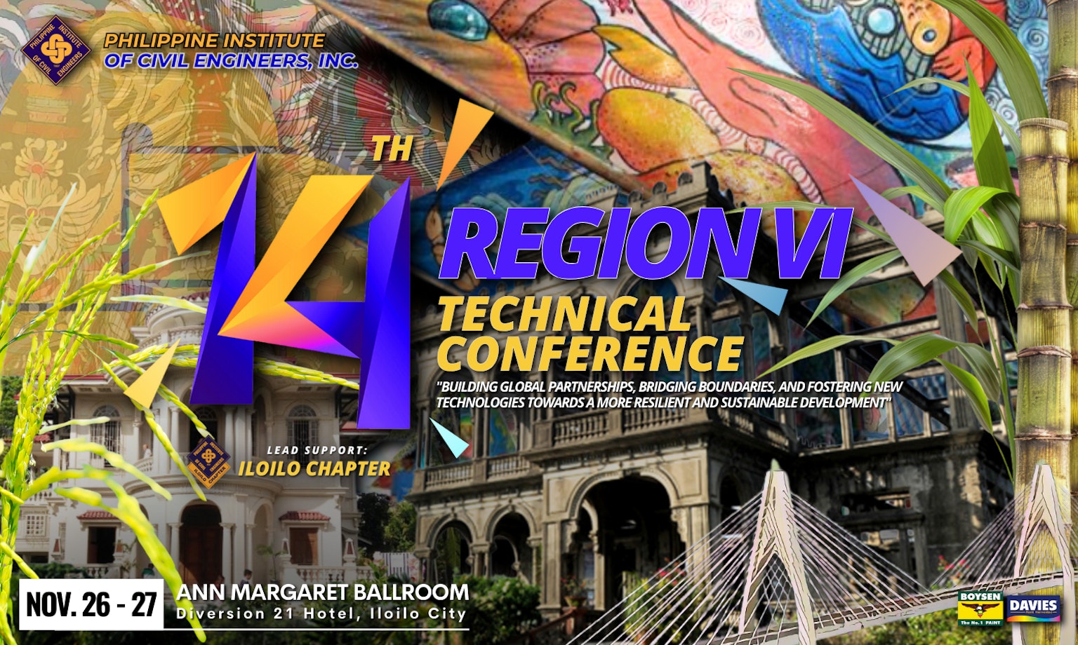 The National Board of Directors, through the Regional Technical Conferences Committee and in collaboration with the Philippine Institute of Civil Engineers (PICE) Chapters in Region VI, is pleased to announce the 14th Region VI Technical Conference. Slated for November 26-27, 2024, the event will be held at the Ann Margaret Ballroom of the Diversion 21 Hotel in Iloilo City.
